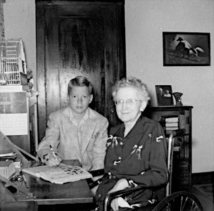 My grandmother and me siting at her desk. She taught me how to read and write, about the Bible, and of course, her daily crosswords in the paper.