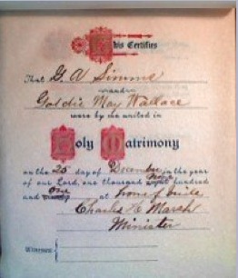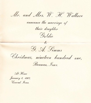 were married in the home of Goldie's parents, William and Samantha Wallace